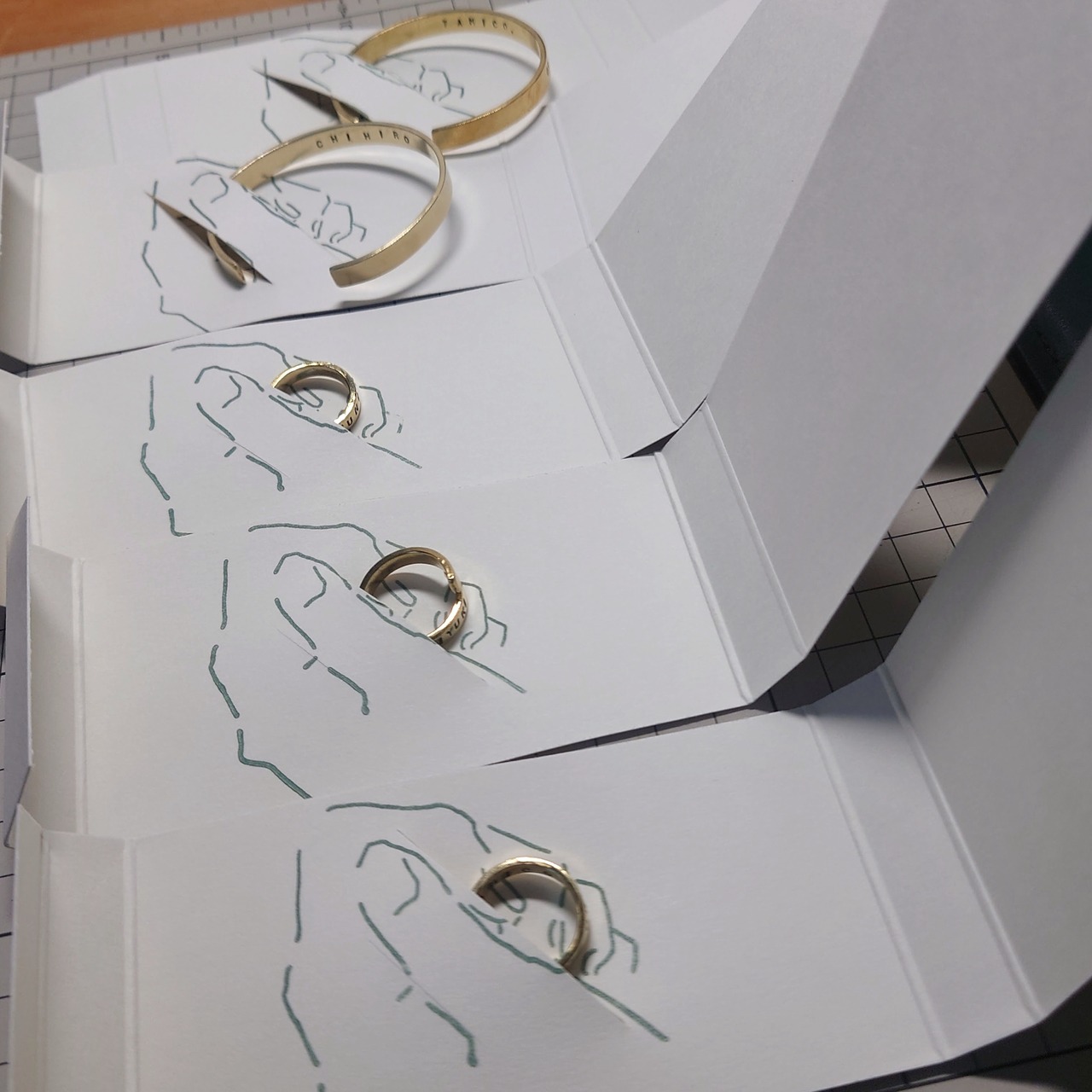 ・資料から表面のテクスチャーやピンキーリングのサイズ(もしくは別の指)のサイズをお選び下さい。
